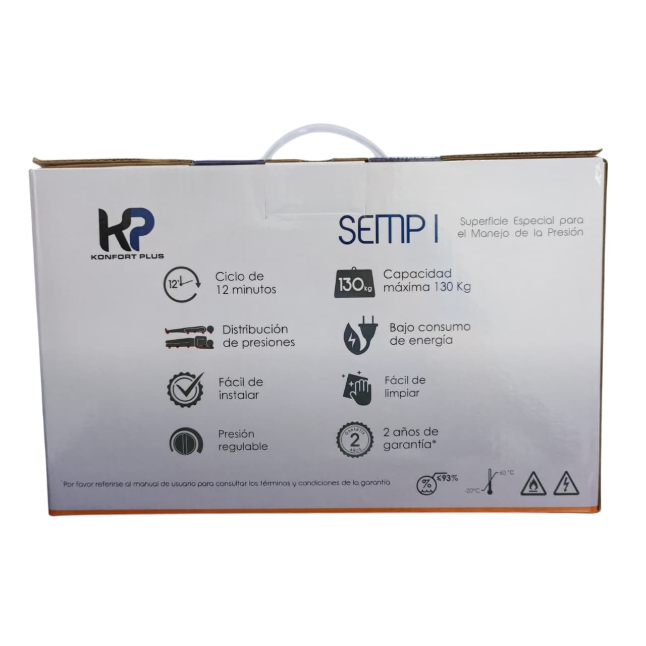 El Colchón Antiescaras Konfort Plus es una Superficie Especial para el Manejo de la Presión (SEMP), diseñada específicamente para pacientes con riesgo o presencia de úlceras por presión grado 1. Su tecnología de presión alterna es fundamental para el manejo clínico preventivo y terapéutico.