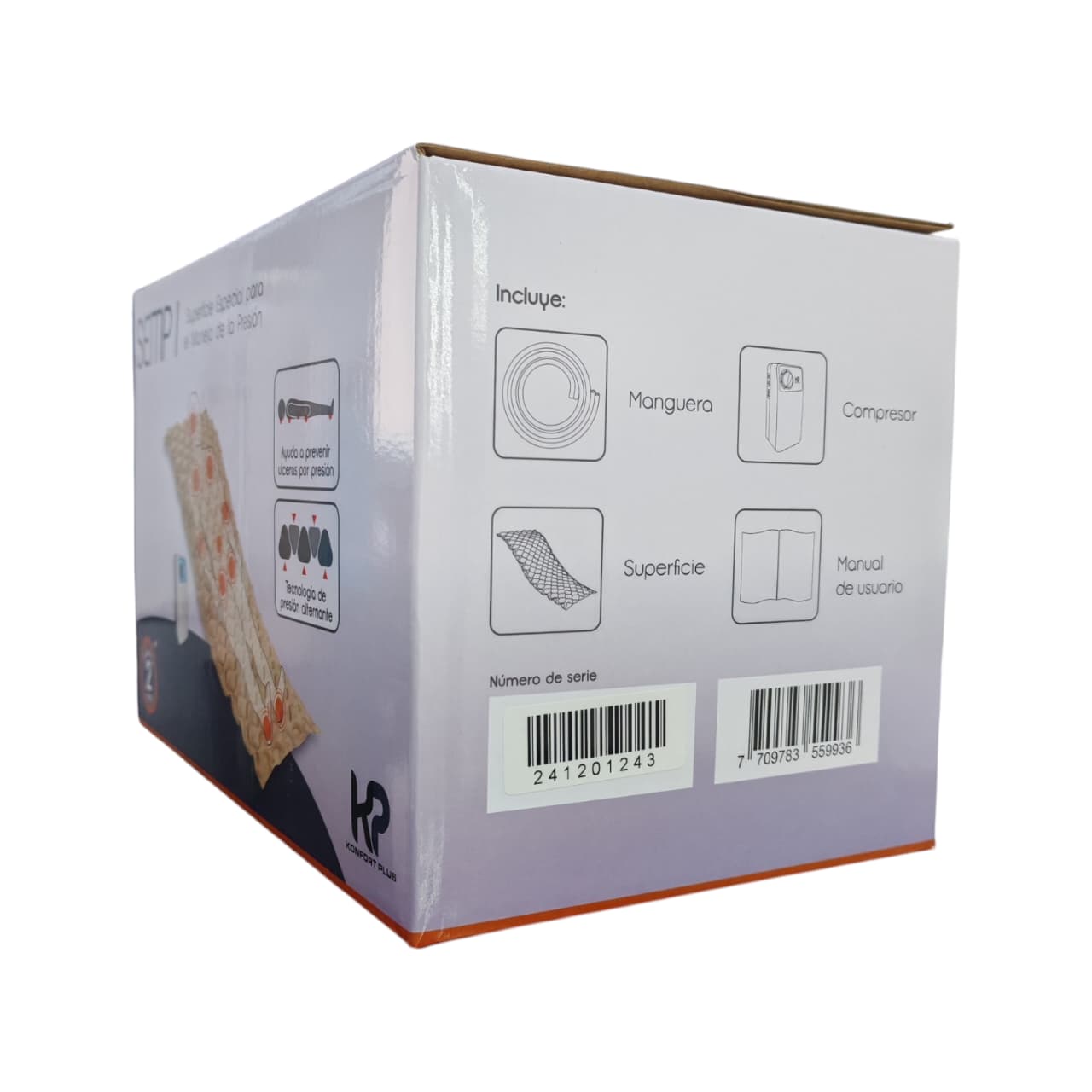 Tecnología Dinámica: Sistema de celdas de aire que se inflan y desinflan de manera secuencial y continua, alternando los puntos de apoyo para aliviar la presión sobre los tejidos.