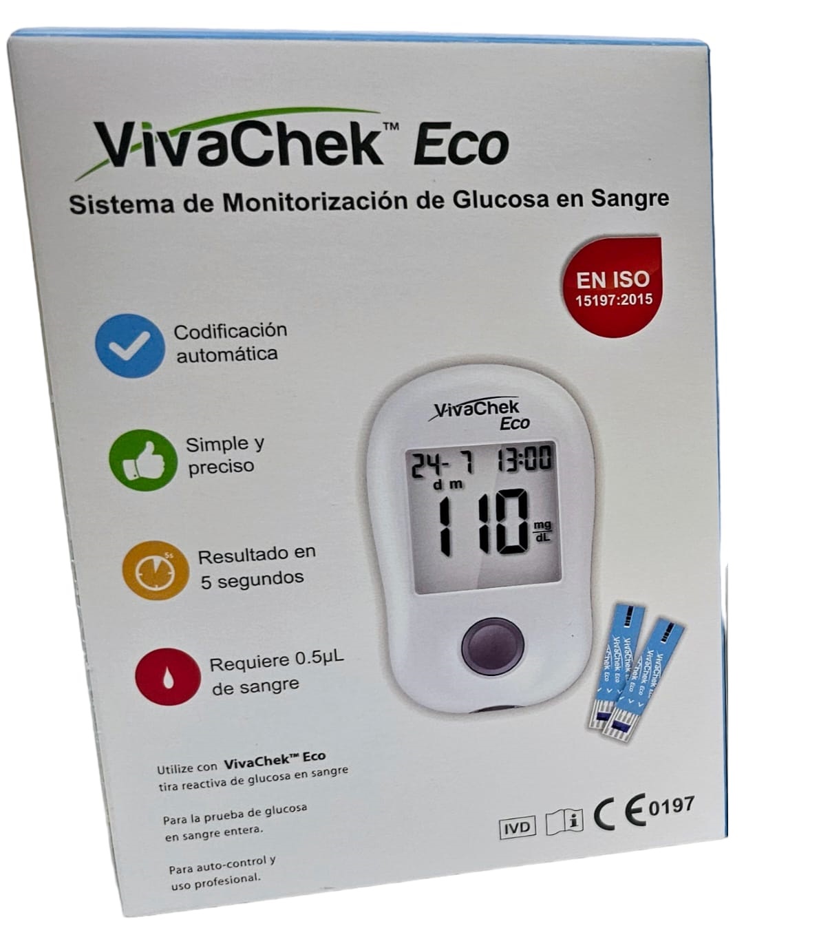 - Resultados en 5 Segundos: Obtenga su lectura de glucosa de manera casi instantánea, optimizando su tiempo.