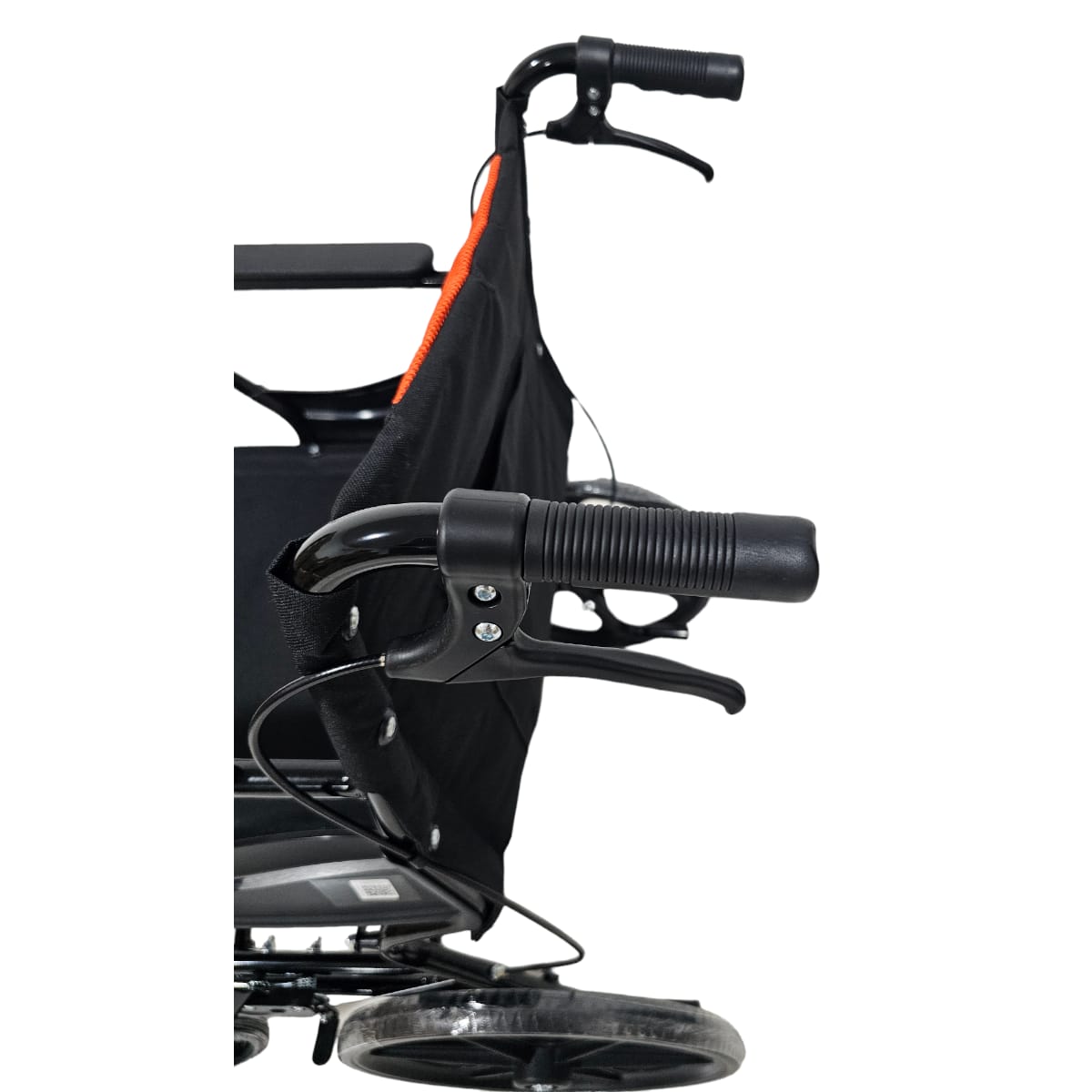 • Control Total para el Cuidador: Equipada con un sistema de frenos accionados directamente desde las manijas de empuje, lo que garantiza una detención segura y reduce el esfuerzo del cuidador.