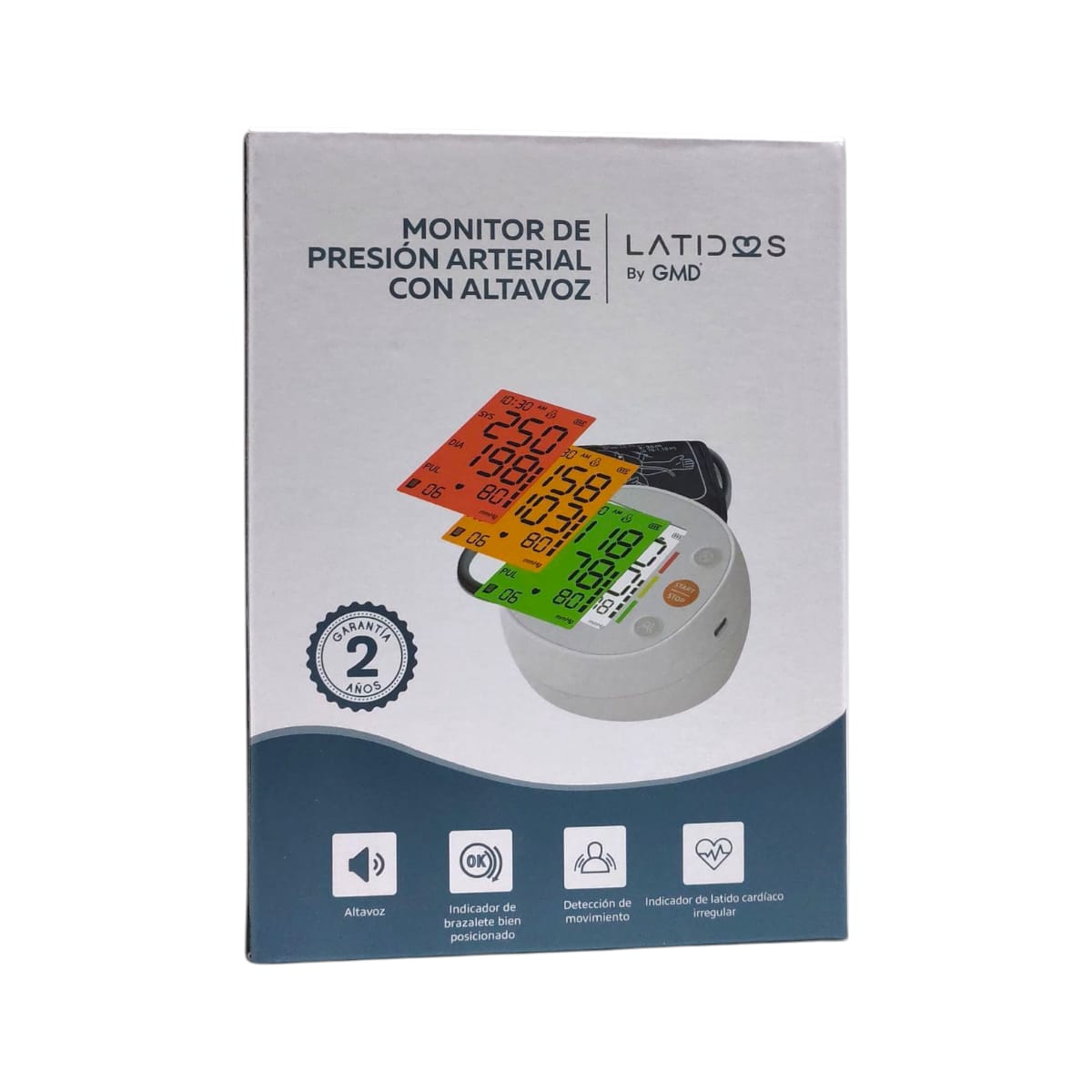 El monitor de presión arterial Latidos es la herramienta definitiva para el cuidado cardiovascular en casa. Gracias a su sistema de guía por voz (altavoz) y su pantalla retroiluminada de 4 colores, interpretar sus resultados es más sencillo que nunca: los colores cambian según los estándares de la OMS para indicarle su estado de salud al instante.